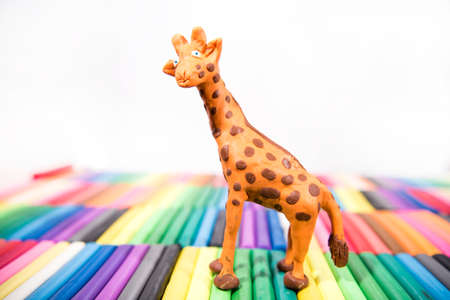 Play clay Animals. Giraffe on colored background.