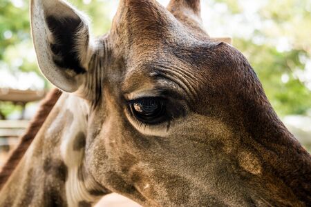 Close up portrait of a giraffe camelopardalis in nature and zoo