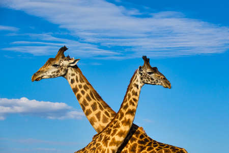 Cute giraffe under the blue sky