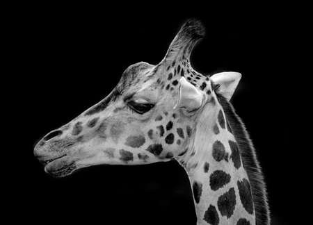 portrait of giraffe on black background