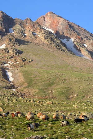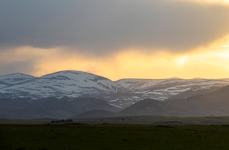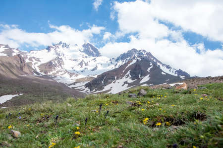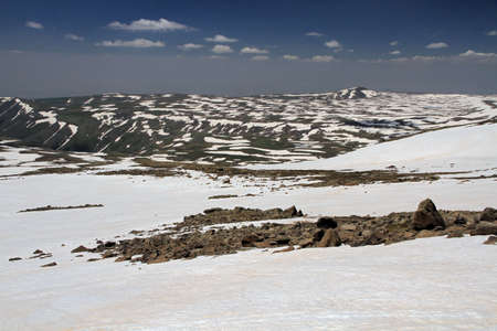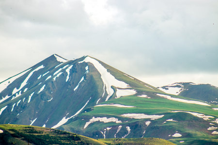 Mountains of Armenia in June with snow-covered peaks beautiful picturesque landscape
