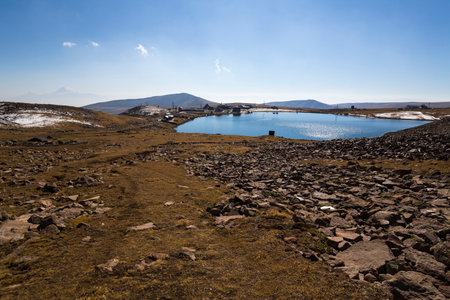 View of Kari lake on the slope of Mount Aragats, Armenia