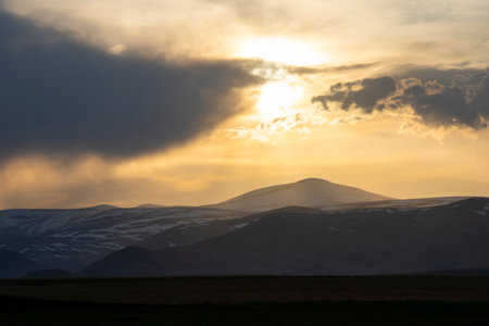 Sunrise in the Suusamyr Valley, Kyrgyzstan, selective focus