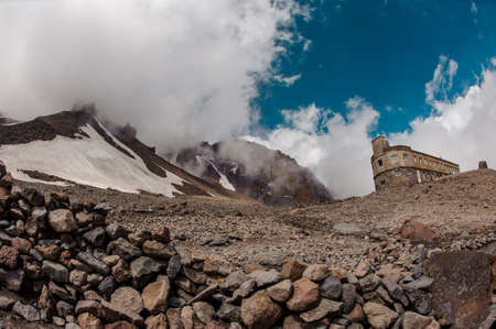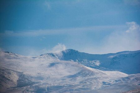 Mount Aragats in Armenia. Beautiful winter landscape. Wow nice cloudy day with mountain