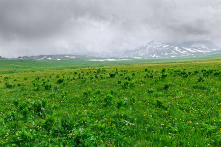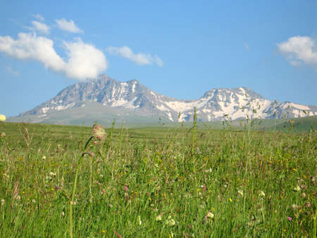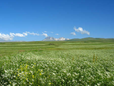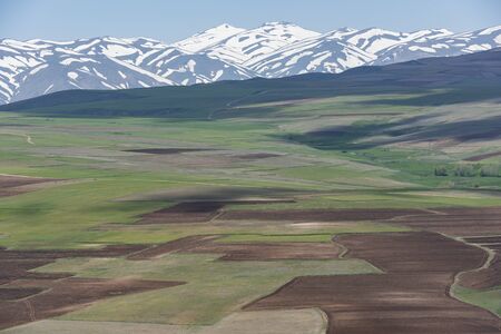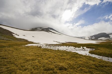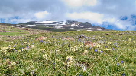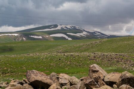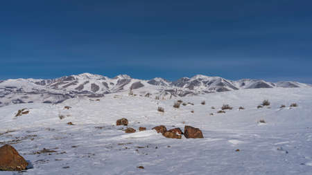 Berçelan plateau snowy mountain landscape and blooming ground, Hakkari, Turkey