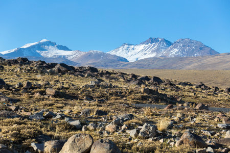 Deosai National Park Picturesque Breathtaking View of Landscape with Snow Capped Mountains on a Sunny Blue Sky Day