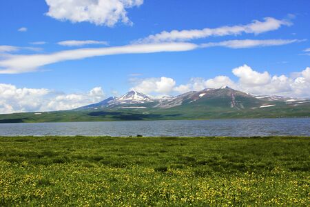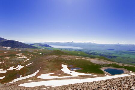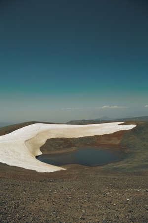 Landscape Frozen scenic Lake Kari high in the mountains of Armenia in summer