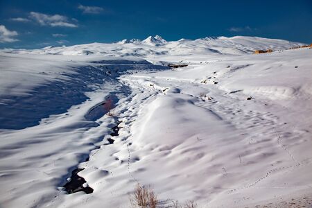 A snowy alpine landscape. The Mount Aragats. Armenia.