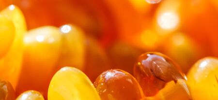 Sunny beads of fire amber. Natural gemstone background, jewelry concept
