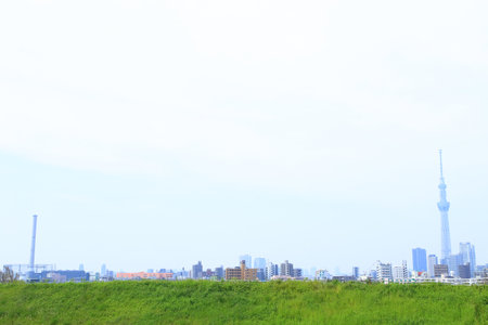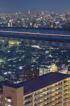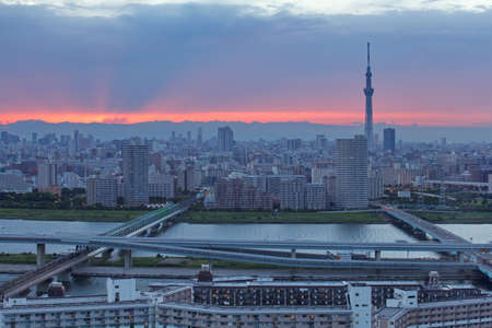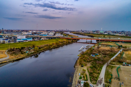 Arakawa and Tokyo cityscape. Shooting Location: Adachi-ku, Tokyo