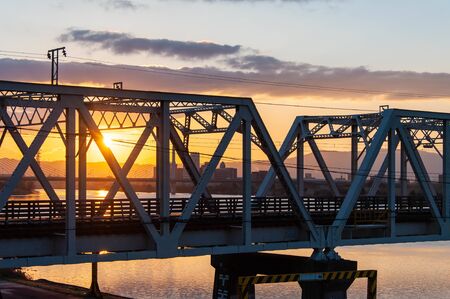 Morning of the iron bridge over the Yodo River