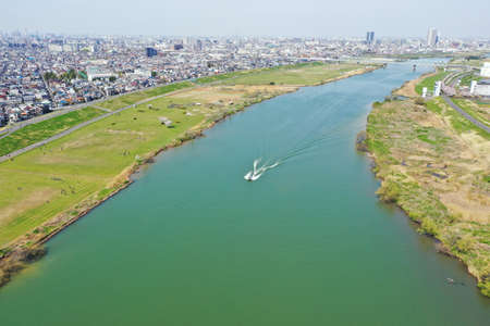 Aerial photography of the swollen Edogawa River