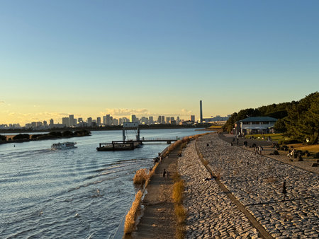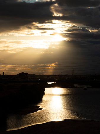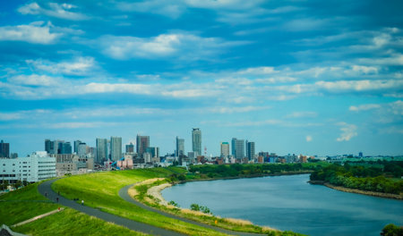 Riverbank and cityscape. Shooting Location: Saitama Prefecture