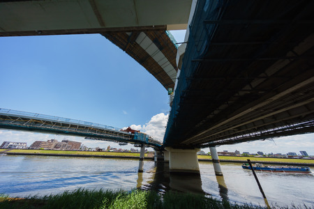 Tokyo Railway bridge and blue sky.