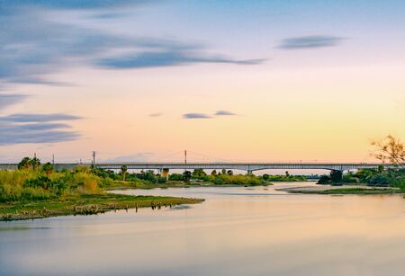 Landscape along the river at sunset