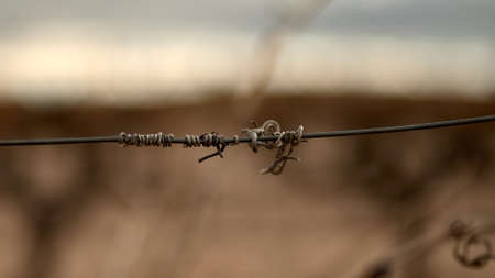 Top of barbed wire fence closeup, macro photo