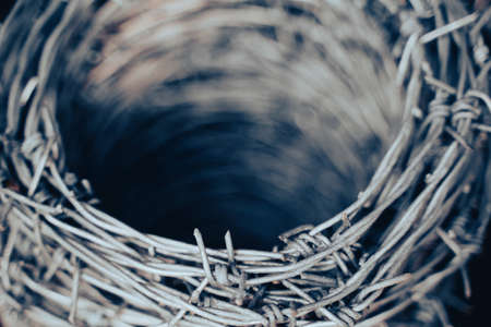 Close up of barbed wire, abstract background, selective focus