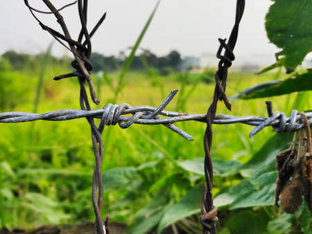 Barbed wire. Barbed wire on fence to feel worrying Concept