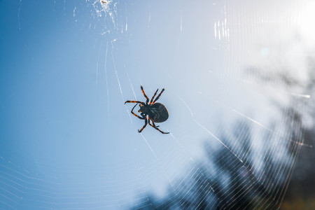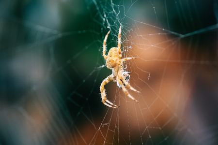 Macro photo of a scary looking European garden spider or Araneus diadematus waiting for prey. Great close up shot of a spider biology or zoology