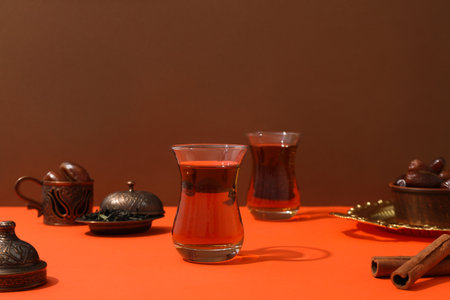 Concept of traditional Turkish brewed hot drink - tea