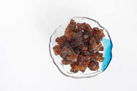 Mastic resin tears. Chios mastic on gray black background