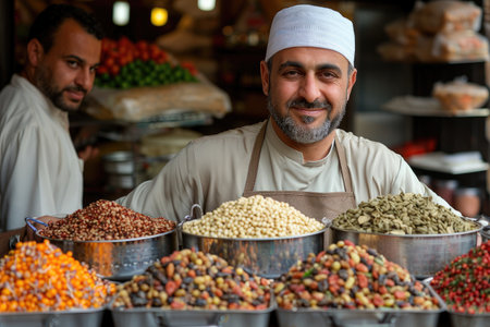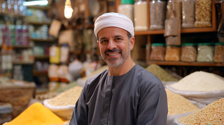 Portrait of a mature man selling spices in a spice shop.