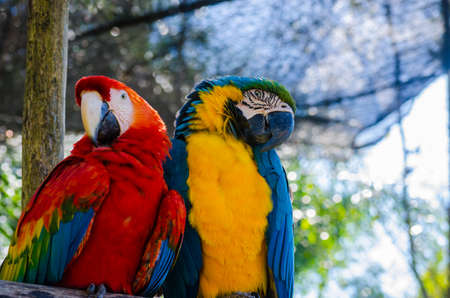 beautiful Scarlet macaws (Ara ararauna) in the nature