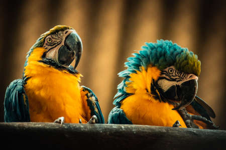 The colorful parrot (Ara ararauna) is on the seashore in Taiwan.