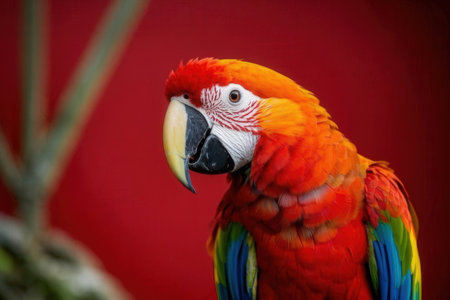 Vibrant macaw perched on branch, looking beautiful generated by artificial intelligence