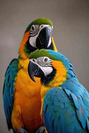 This captivating image showcases the stunning details of a colorful parrot, highlighting the exquisite feather texture. The vibrant blues, greens, yellows, and reds blend harmoniously, creating an artistic representation of nature's beauty, perfect for wildlife enthusiasts and art lovers alike.