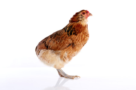 Hen in front of a white background