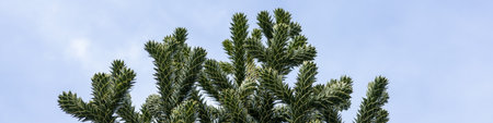 4x1 banner for websites and social networks with araucaria branches on a blue sky background