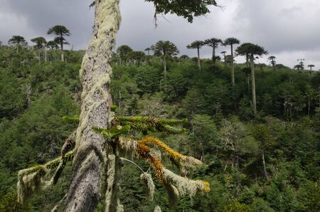 Forest with monkey puzzle trees Araucaria araucana. Conguillio National Park. Araucania Region. Chile.
