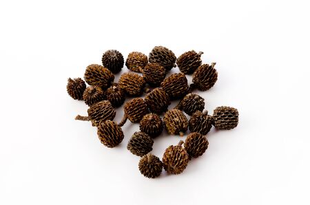 angle view herb CaoGuoRen or Tsaoko Fructus or Tsaoko Amomum Fruit vertical composition