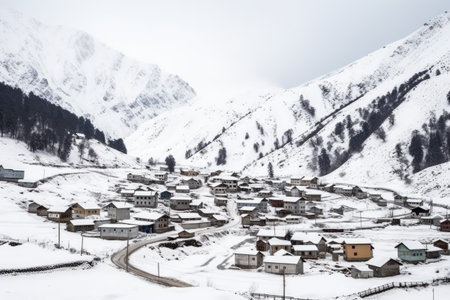 an isolated mountain village covered by a blanket of snow, created with generative ai