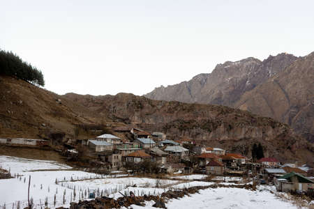 Mountain village in the Caucasus Mountains in winter, Svaneti, Georgia.