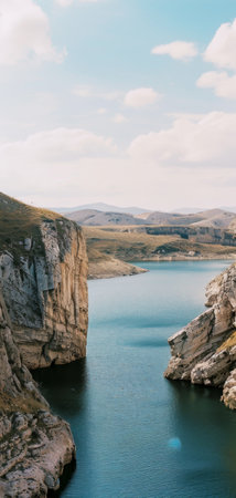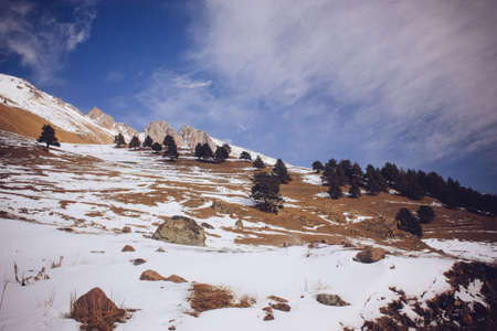 Picturesque mountain landscape with blue sky in Kabardino-Balkaria, Russia