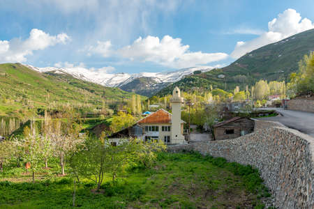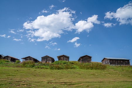 View of high plateau village, forest and mountain in fog creating beautiful nature scene. The image is captured in Trabzon/Rize area of Black Sea region located at northeast of Turkey.