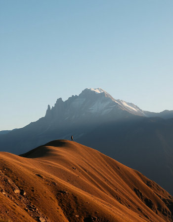 View of beautiful mountains in northern caucasus in the evening or early morning