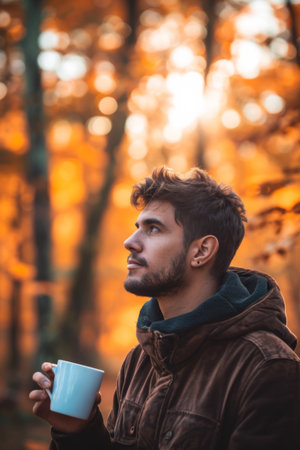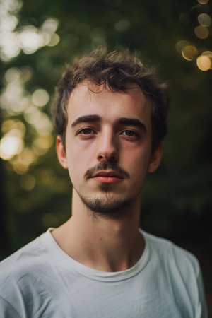 A young man poses with a warm smile in soft natural light. The blurred background creates a serene and joyful atmosphere, perfect for capturing moments of happiness.