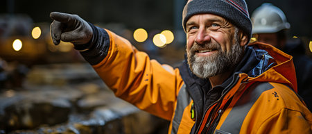 Joyful construction worker enjoys his day at work showing a spirit of teamwork and commitment.