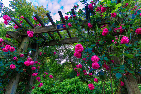 Pink rose tunnel at Ilsan Lake Park in Goyang, Korea