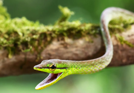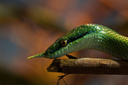 Long-nosed whip snake is a kind of poisonous snake Living most of the tree life