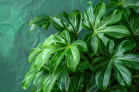 Shiny wet green leaves background. Top view tropical leaves wallpaper