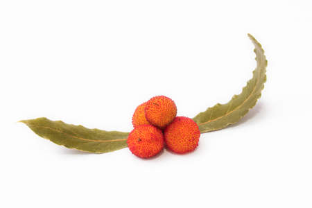 Close up view of strawberry tree (Arbutus Unedo) fruit isolated in white background.