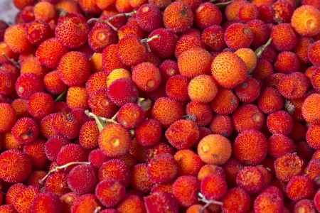 Arbutus unedo fruits on a market in Morocco