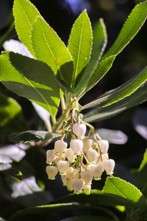 Pieris japonica, species of beautiful flowering shrubs in the family Ericaceae. popular ornamental garden plant.