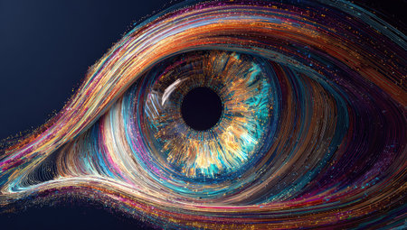 Close up of a mesmerizing human eye with vibrant colors and intricate details, showcasing emotions and depth, perfect for eye care or artistic themes