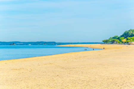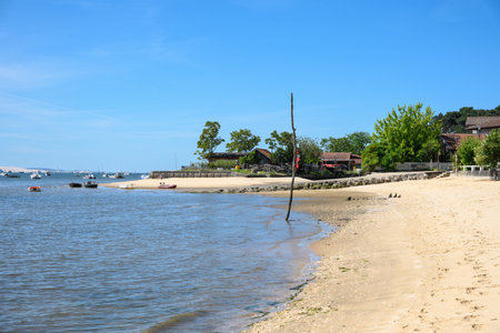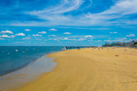 View of Arcachon beach on a sunny day. Arcachon is famous seaside town on the Atlantic ocean in Aquitaine, France.