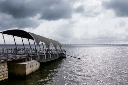 Andernos les Bains longest pier in Europe with wooden steel modern bench in BASSIN D'ARCACHON France